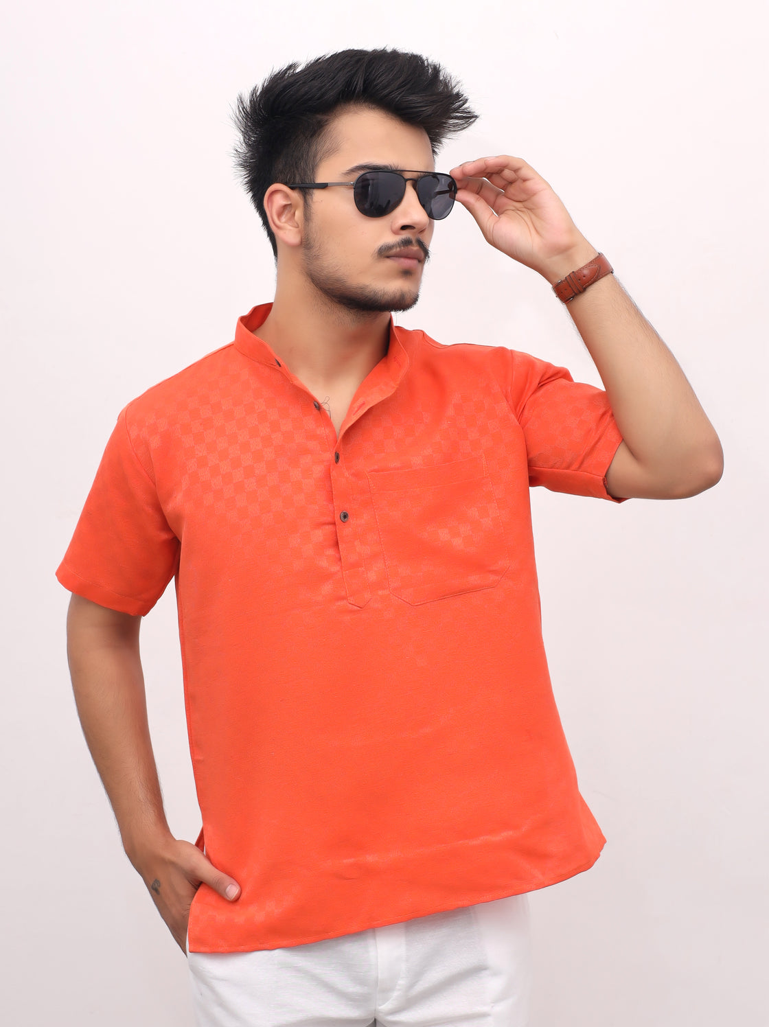 YOU SAVE ₹ 801 Men's Orange Urban Check Short KurtaRegular price ₹ 599Regular priceUnit price / per₹ 1,400Sale price ₹ 599Sale
