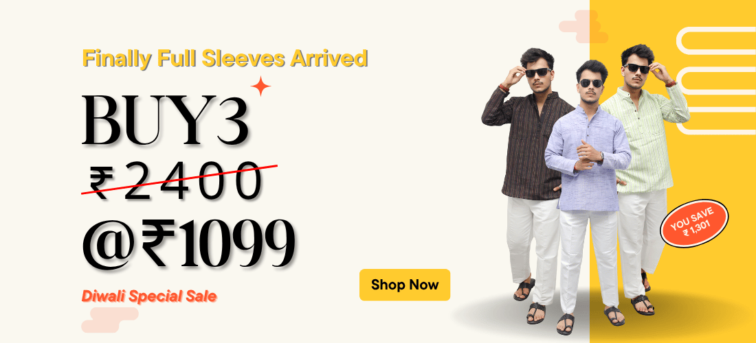Golden Striped Full Sleeves Short Kurta-Blue