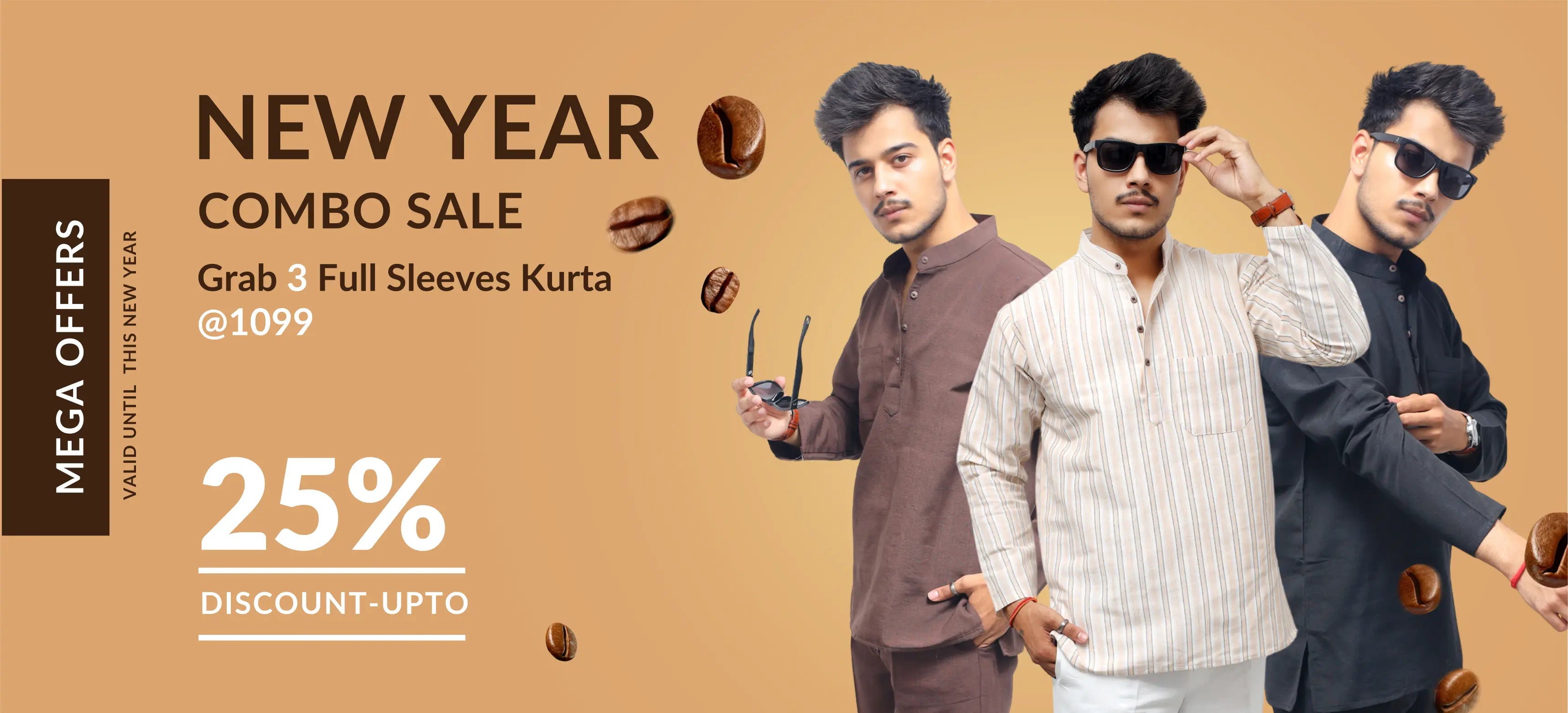 Solid Full Sleeves Short Kurta-Beige