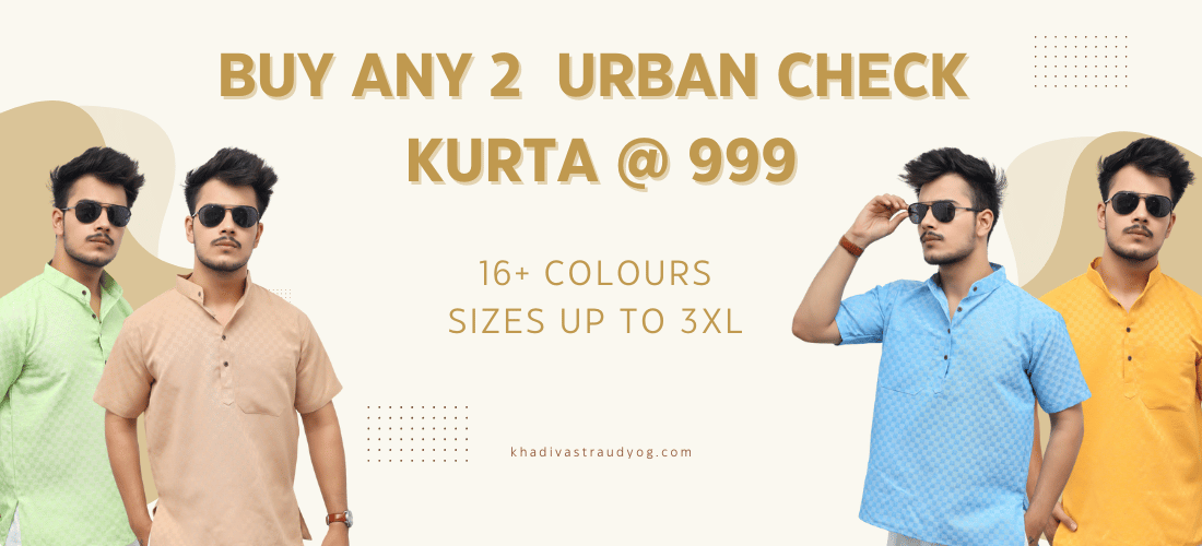 Men's Lemon Urban Check Short Kurta