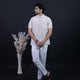 Combo Set White Striped Half Sleeves Short Kurta Pant-Skin