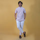 Combo Set Wide Stripe Half Sleeves Short Kurta Pant-Purple